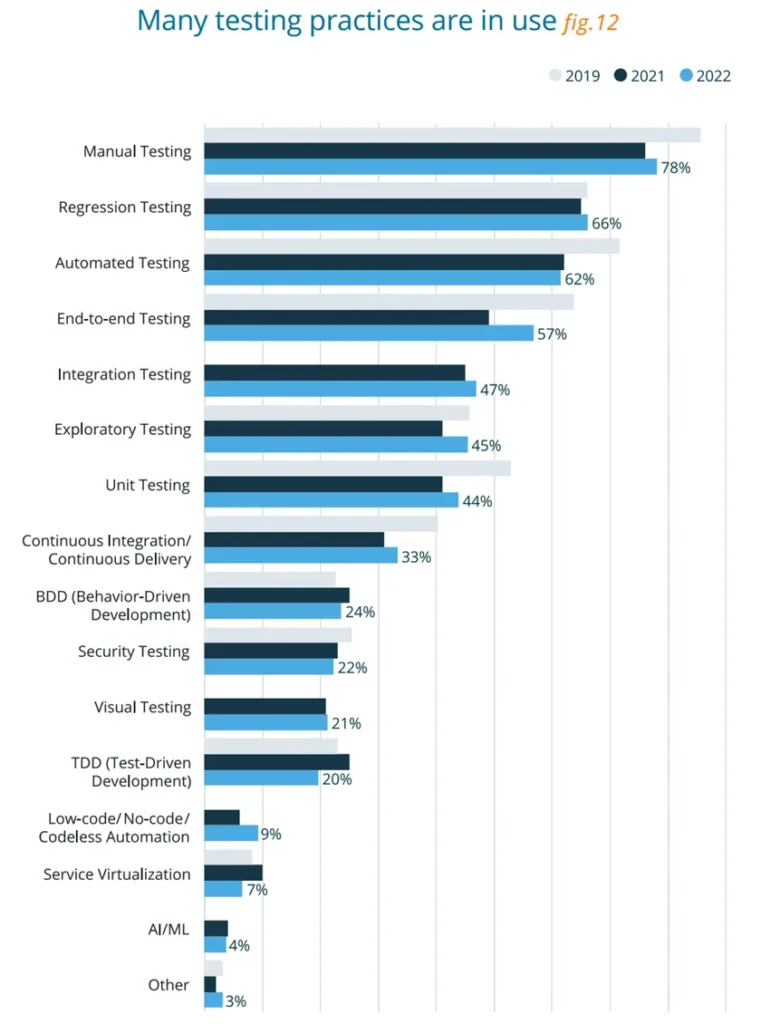 Reading the recently published Smartbear report, “State of Software Quality | Testing Latest Trends and Insights for 2022”, there were a couple of statistics that I found interesting and aligned with what I am seeing too. All the illustrations that I have used in this paper are taken from this report.