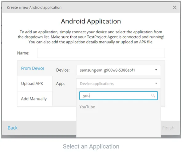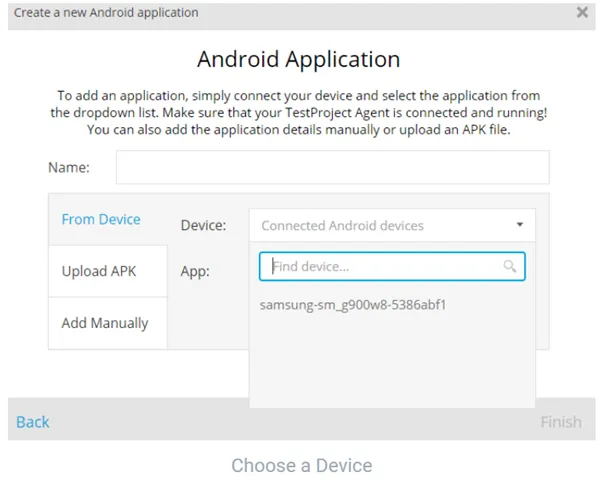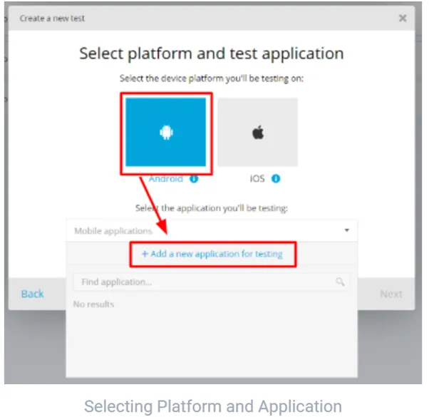 Then, you need to select the platform and the application which you are going to test. In this example, I selected “Android”.